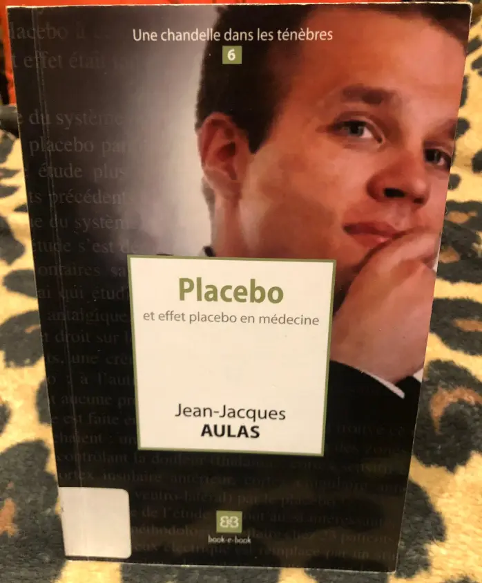 Ce tout petit ouvrage édité chez book-e-book dans l’excellente collection « Une chandelle dans les ténèbres » est actuellement la référence qui se centre le plus directement sur les concepts de placebo et nocebo. En une cinquantaine de pages aérées, le psychiatre et psychopharmacologue Jean-Jacques Aulas nous résume avec limpidité ce que nous ignorons et découvrons (en 2009) modestement au sujet de ces produits et effets. Le livre est très peu onéreux, moins de dix euros, et peut se lire rapidement, comme se creuser longuement. Mention spéciale pour la lecture en PDF sur écran : comme sa mise en page est très aérée et la police suffisamment grande, l’oeil du lecteur est flatté. Les citations en italique dans cet article sont issues de ce livre et donc attribuables à Aulas (2009), sauf précision.