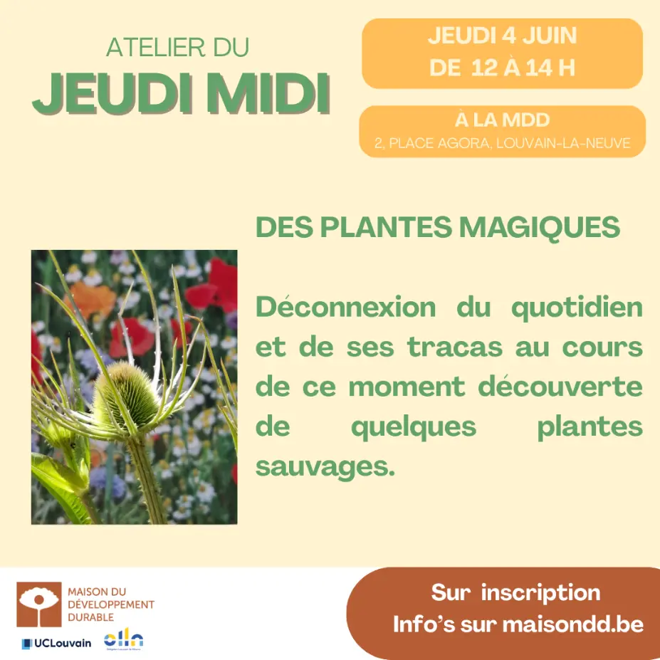 Inscription via la Maison du développement durable ! https://maisondd.be/events/jeudi-midi-des-plantes-magiques/